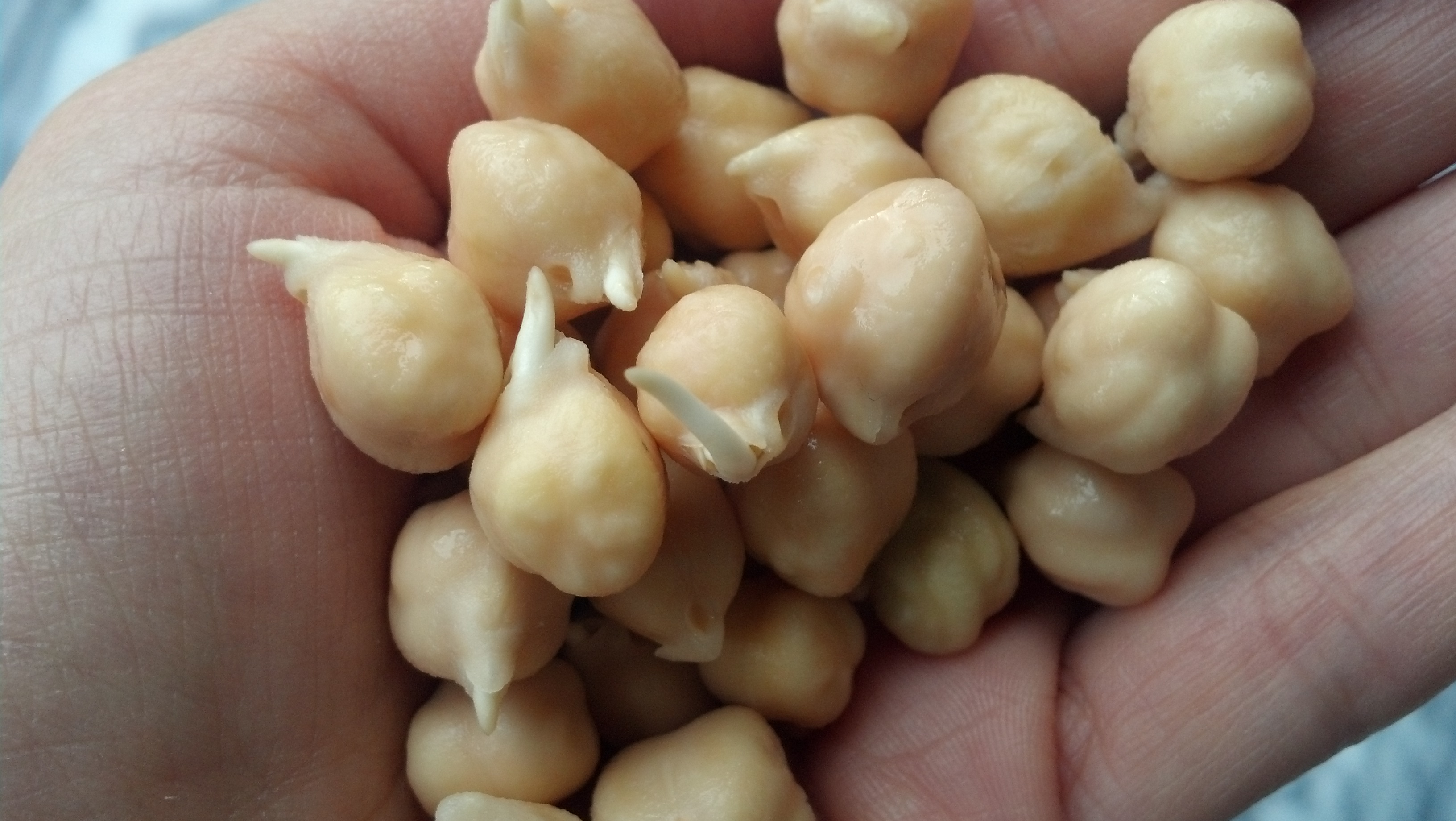 7. Make a pate or chumus out of your sprouts! Making a paté out of your spouts (or chumus, if it’s chickpeas), involves putting a few basic ingredients into your food processor, along with your sprouts: minced onion or garlic (or both), lemon juice, herbs of your choosing (cilantro and/or parsley are great choices), salt, seasoning (cumin is great for this, but also paprika, turmeric, cayenne pepper, curry etc.) and some olive oil. If you’re making chumus, then replace the olive oil with tahini. For exta flavor, you can also add in some say sauce/tamari/nama shoyu (all variations of the same thing). Experiment with different proportions and different herbs and spices! Make it your own! You really can’t go wrong, since you can always adjust the taste if it’s not quite right. If you’re not feeling quite daring just yet, here are recipes from the web to inspire you: Jennifer Cornbleet’s paté (sub in any legume for the walnuts) or Vegan Baker’s Raw Sprouted Chumus.